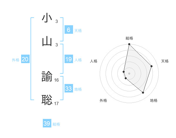 小山 諭聡さんの総格は39画の5点!