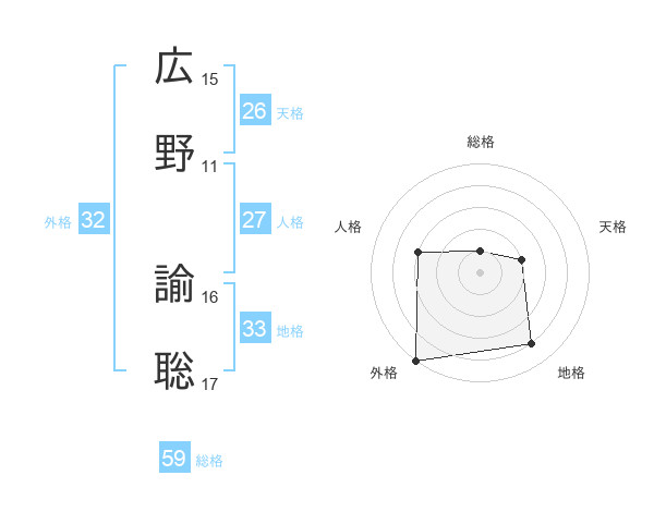 広野 諭聡さんの総格は59画の1点!