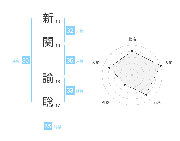 新関 諭聡さんの総格は65画の4点!