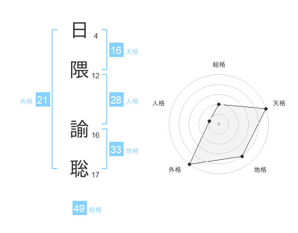 日隈 諭聡さんの総格は49画の2点!