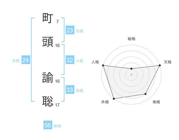 町頭 諭聡さんを姓名の画数から五運を鑑定