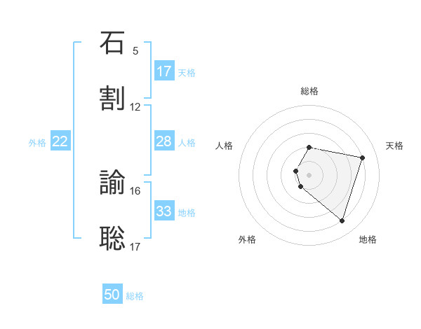 石割 諭聡さんを姓名の画数から五運を鑑定