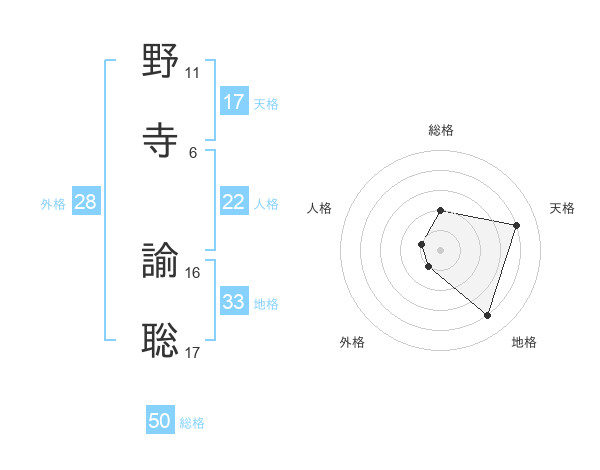野寺 諭聡さんの天格は17画の4点!