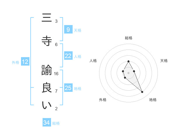 三寺 諭良いさんの地格は25画の4点!
