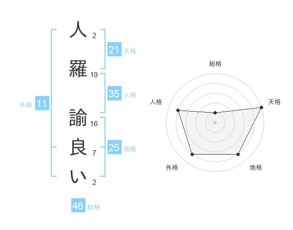 人羅 諭良いさんの外格は11画の4点!