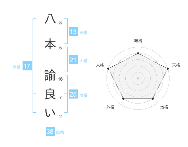 八本 諭良いさんの天格は13画の5点!