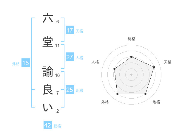 六堂 諭良いさんの総格は42画の3点!