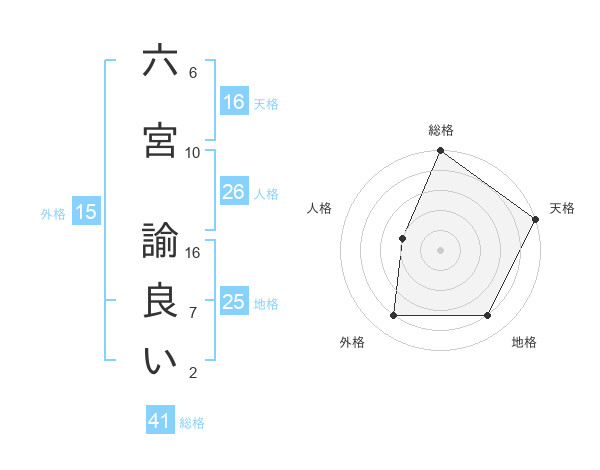 六宮 諭良いさんを姓名の画数から五運を鑑定