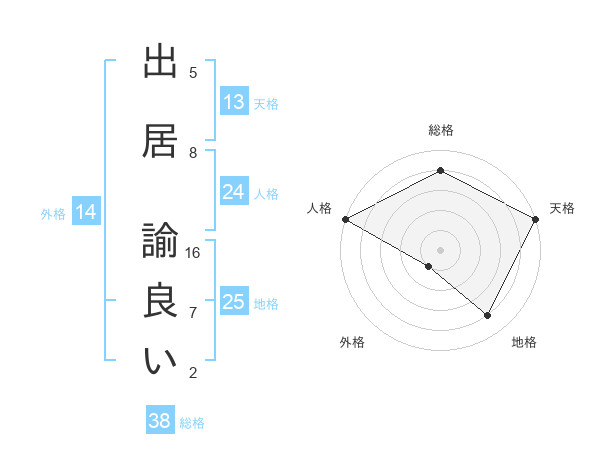 出居 諭良いさんの総格は38画の4点!