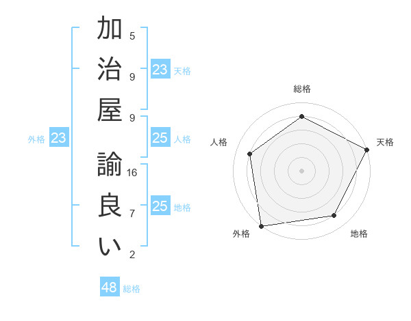 加治屋 諭良いさんの天格は23画の5点