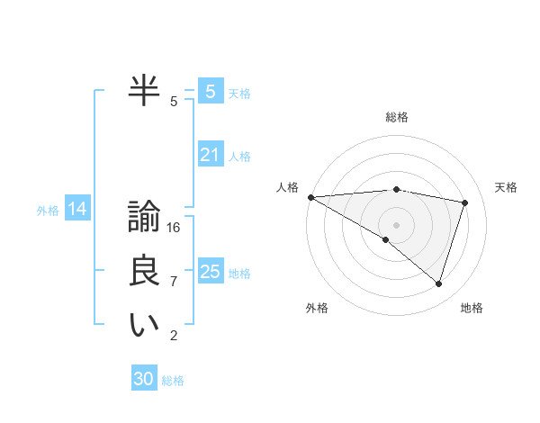 半 諭良いさんの総格は30画の2点!