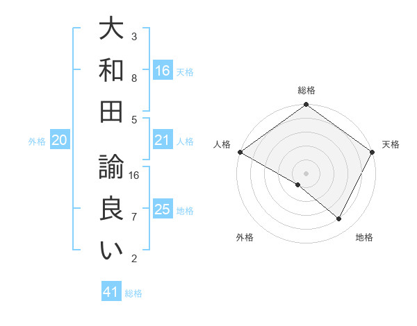 大和田 諭良いさんを姓名の画数から五運を鑑定