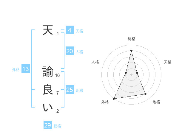 天 諭良いさんの総格は29画の4点!
