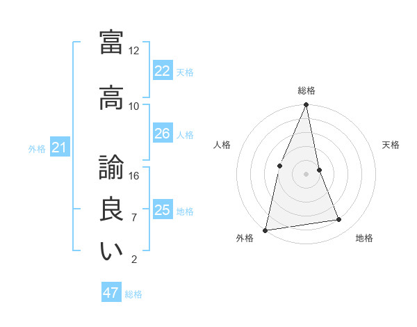 富高 諭良いさんの総格は47画の5点!
