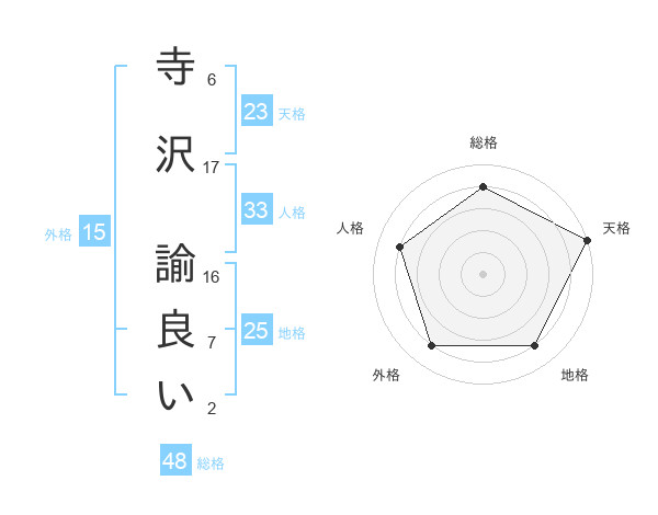 寺沢 諭良いさんを姓名の画数から五運を鑑定