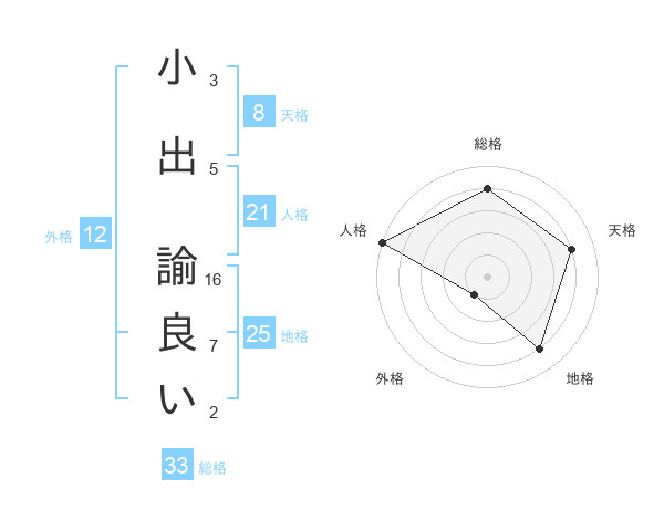 小出 諭良いさんを姓名の画数から五運を鑑定