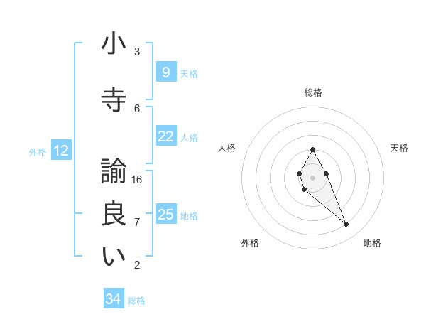 小寺 諭良いさんを姓名の画数から五運を鑑定