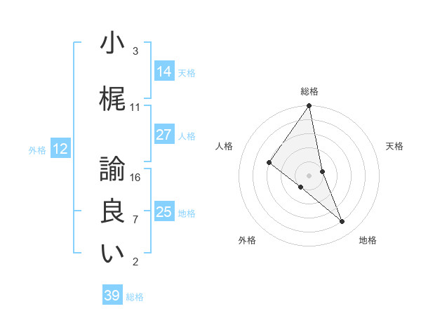 小梶 諭良いさんを姓名の画数から五運を鑑定