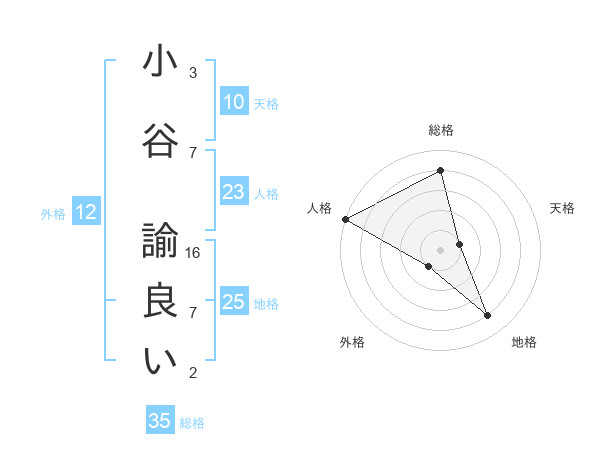 小谷 諭良いさんを姓名の画数から五運を鑑定