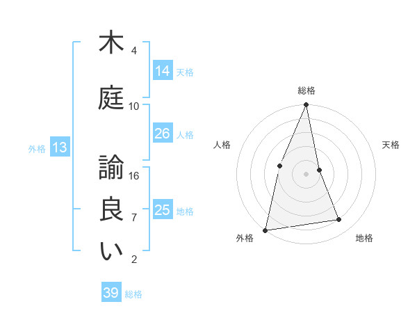 木庭 諭良いさんを姓名の画数から五運を鑑定
