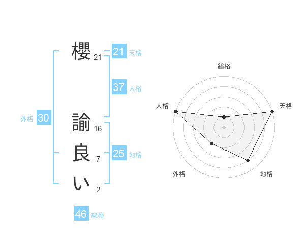 櫻 諭良いさんの総格は46画の1点!
