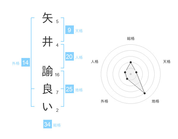 矢井 諭良いさんの地格は25画の4点!