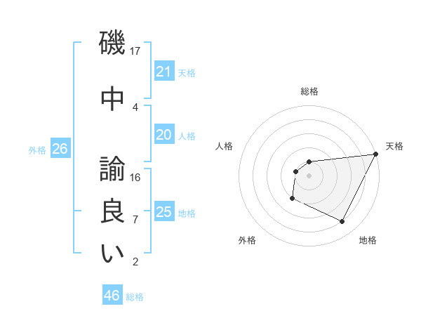 磯中 諭良いさんを姓名の画数から五運を鑑定