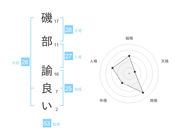 磯部 諭良いさんの総格は53画の3点