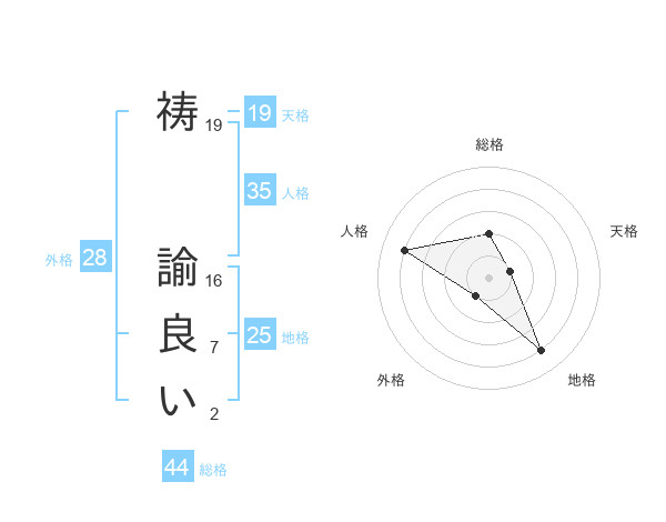祷 諭良いさんを姓名の画数から五運を鑑定