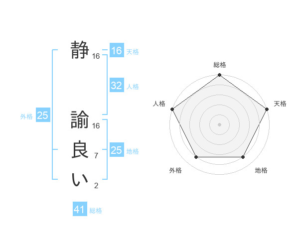 静 諭良いさんの天格は16画の5点!