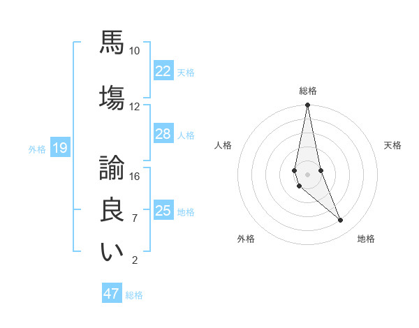 馬塲 諭良いさんを姓名の画数から五運を鑑定