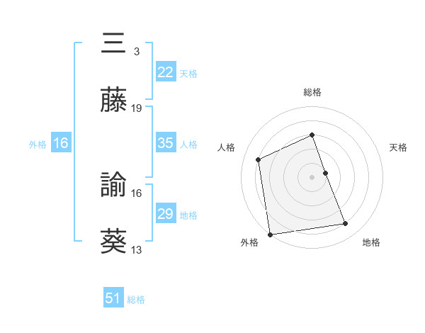 三藤 諭葵さんの天格は22画の1点!