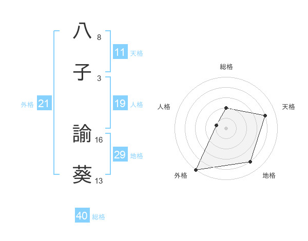 八子 諭葵さんの天格は11画の4点!