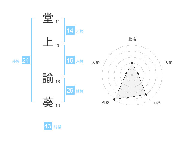 堂上 諭葵さんの総格は43画の2点!