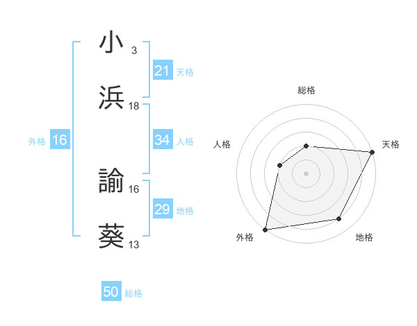 小浜 諭葵さんの外格は16画の5点!