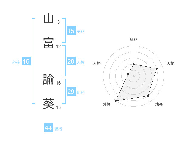 山富 諭葵さんの天格は15画の4点!