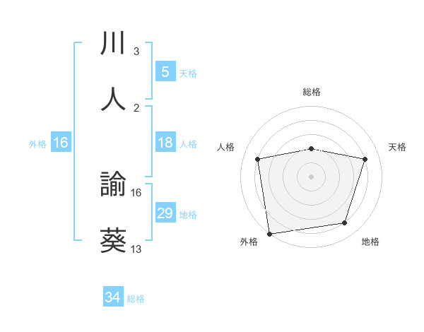 川人 諭葵さんを姓名の画数から五運を鑑定
