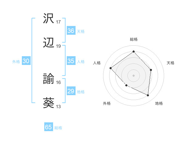 沢辺 諭葵さんの総格は65画の4点!