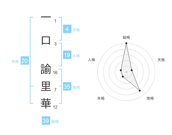 一口 諭里華さんの総格は39画の5点!