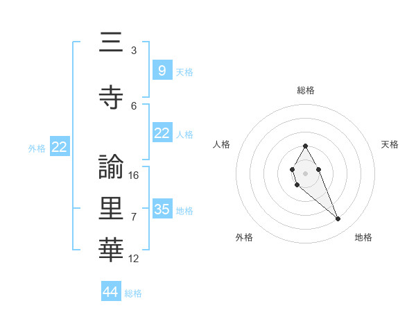 三寺 諭里華さんの外格は22画の1点!