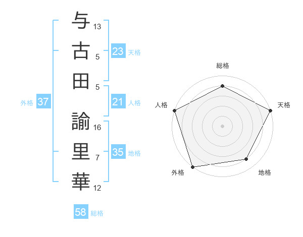 与古田 諭里華さんを姓名の画数から五運を鑑定