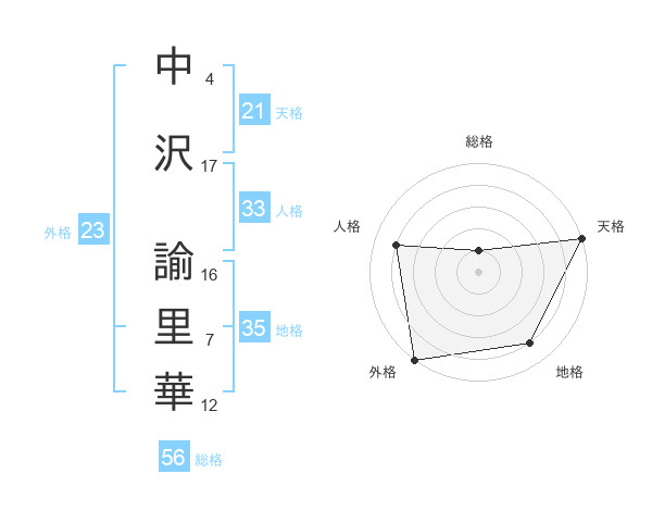 中沢 諭里華さんを姓名の画数から五運を鑑定