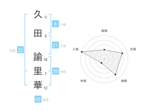 久田 諭里華さんを姓名の画数から五運を鑑定