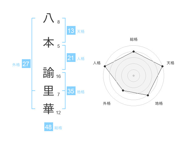 八本 諭里華さんの総格は48画の4点!
