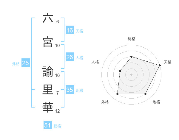 六宮 諭里華さんを姓名の画数から五運を鑑定