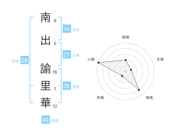 南出 諭里華さんの人格は21画の5点!