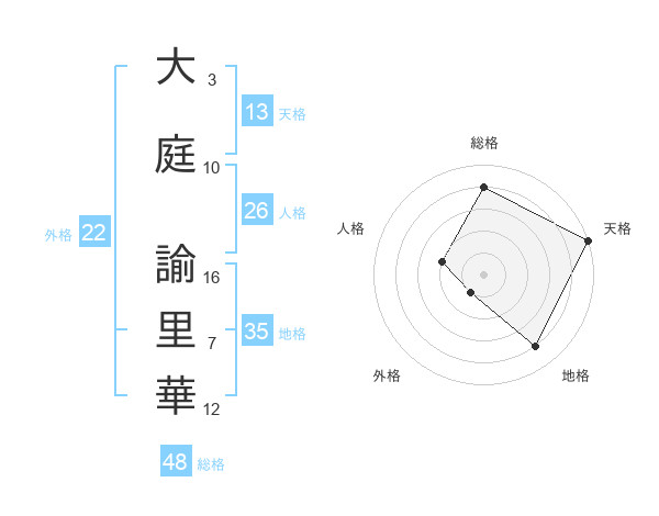 大庭 諭里華さんの天格は13画の5点!