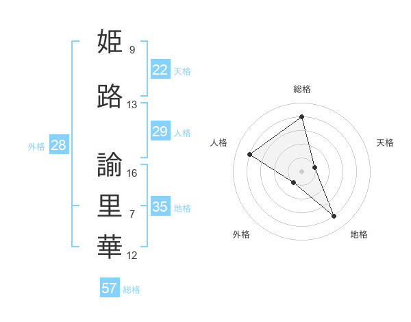 姫路 諭里華さんを姓名の画数から五運を鑑定