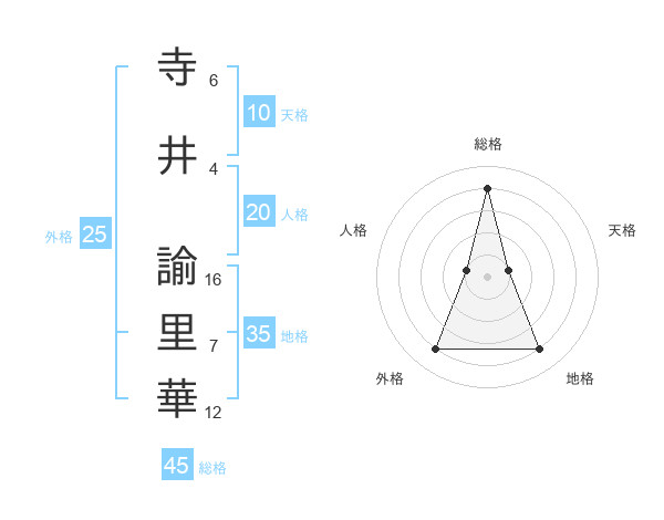 寺井 諭里華さんの総格は45画の4点!