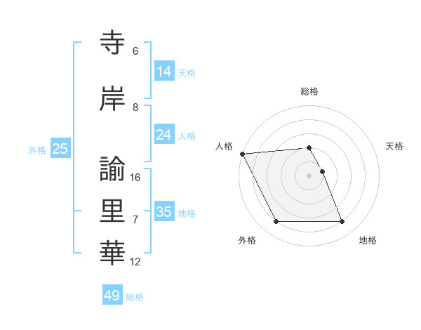 寺岸 諭里華さんの外格は25画の4点!